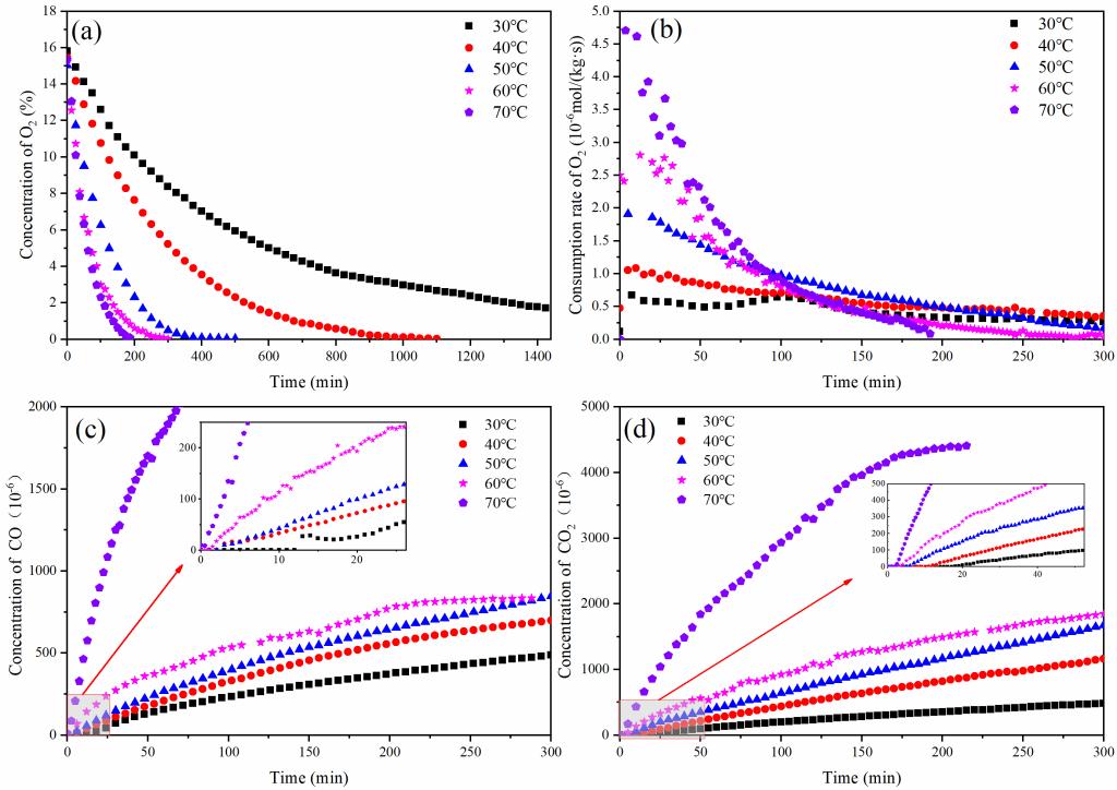 不同温度煤的氧化产气特性